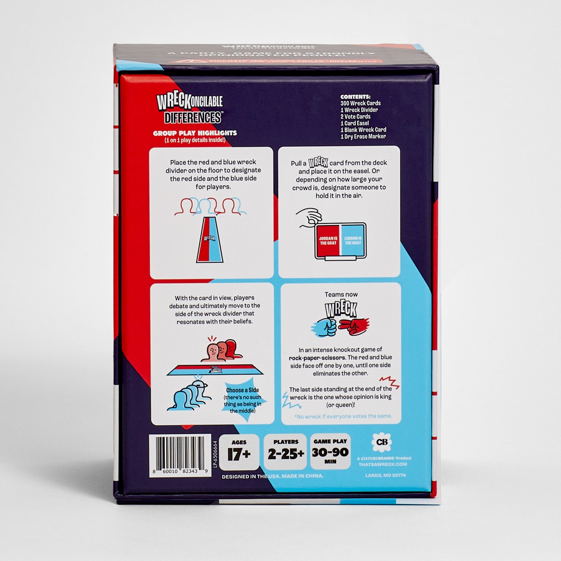 Think you can handle the heat? Get ready for conversations that will get EVERYONE talking! WRECKoncilable Differences is the party game for strongly opinionated people. Face off in fun debates and settle it with Rock, Paper, Scissors. The last side standing takes the crown and ultimate bragging rights. From groups to couple dates, it’s perfect for family game nights, weekend kickbacks, or a wild night with friends.